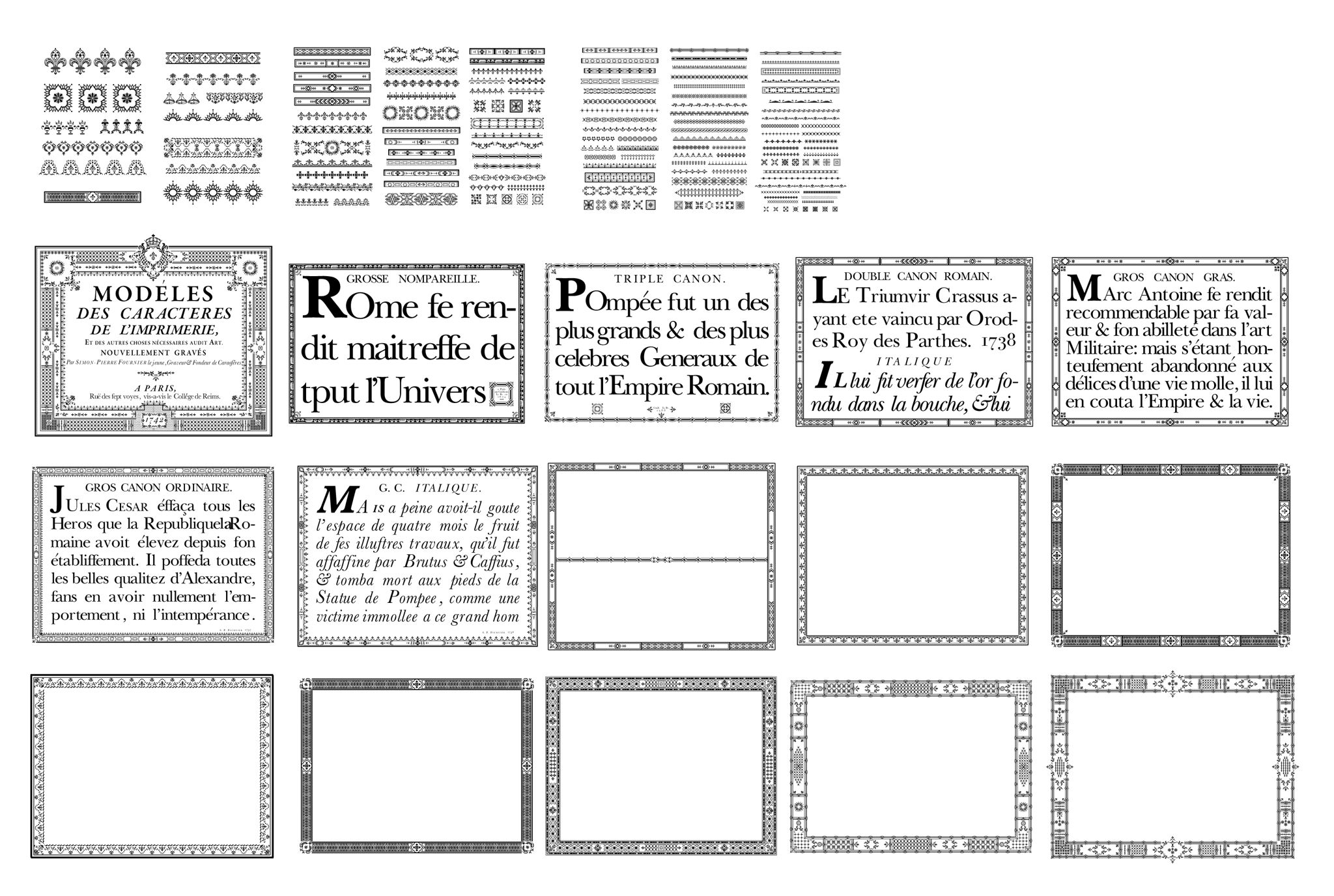 1742年に発行された「Fournier(フルニエ)鋳造所 活字見本帳」に収録されている装飾活字を、自身の研究と検証の為にアドビイラストレーターにて精細にアウトライン化し製作いたしました。一部、テキストが表示されているのはその過程の名残です。そして研究と検証が完了しましたので、配布用として元のものから再サンプリングと改変をし、fengfeeldesign エディションとして用意したのが、このパッケージとなります。その為、オリジナルとは若干異なる部分もありますので、そちらをご利用の方は、この装飾活字は他の媒体で提供している場合が多々ありますから、それらを使用をした方が良いと思います。また、この装飾活字は誕生から既に200年あまりが過ぎ、そして、たくさんの人の手によって再設計が行われてきました。その為、様々な権利から解放されているものとみられますが、どのような使用であれ、あくまで1742年に発行された「Fournier(フルニエ)鋳造所 活字見本帳」である事を引用として明記する事をお勧めいたします。このデータの配布目的といたしましても花形装飾活字を組む際の訓練と研究の目的で製作しました故、出来ればそのように使ってくださると光栄です。