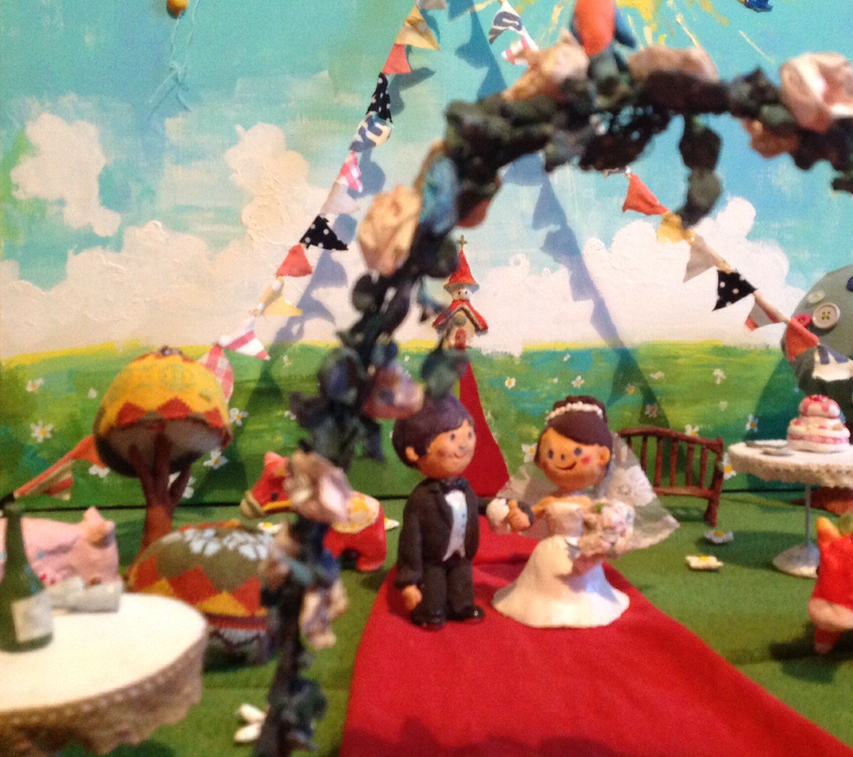 まるで、絵本のなかからとびだしてきたような立体作品です。