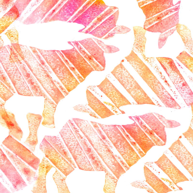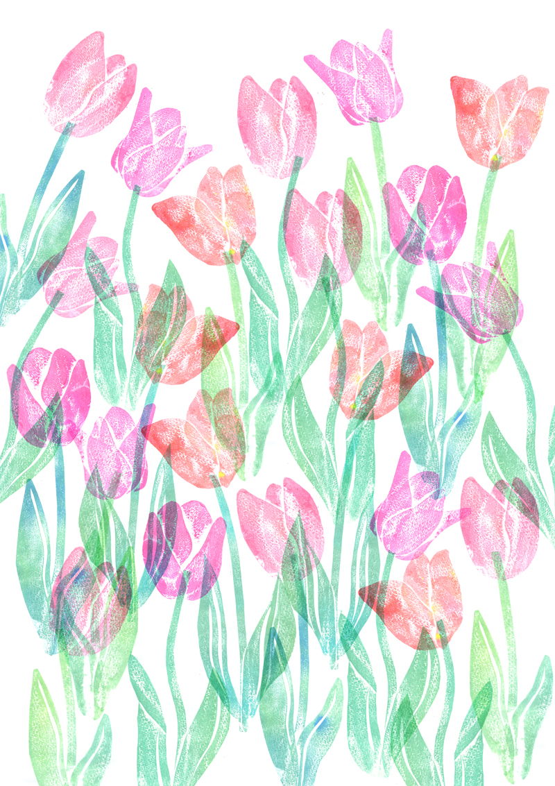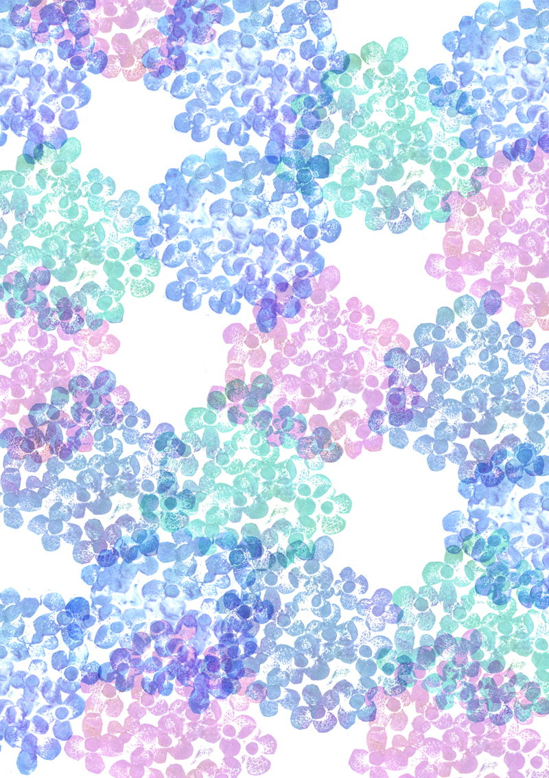 紙版画という技法で制作して、パソコンで編集しています◎