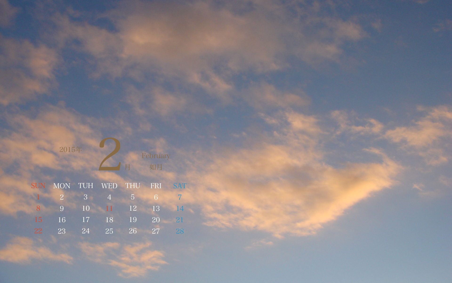 2015年2月PC壁紙(カレンダー付き)1(1920×1200)