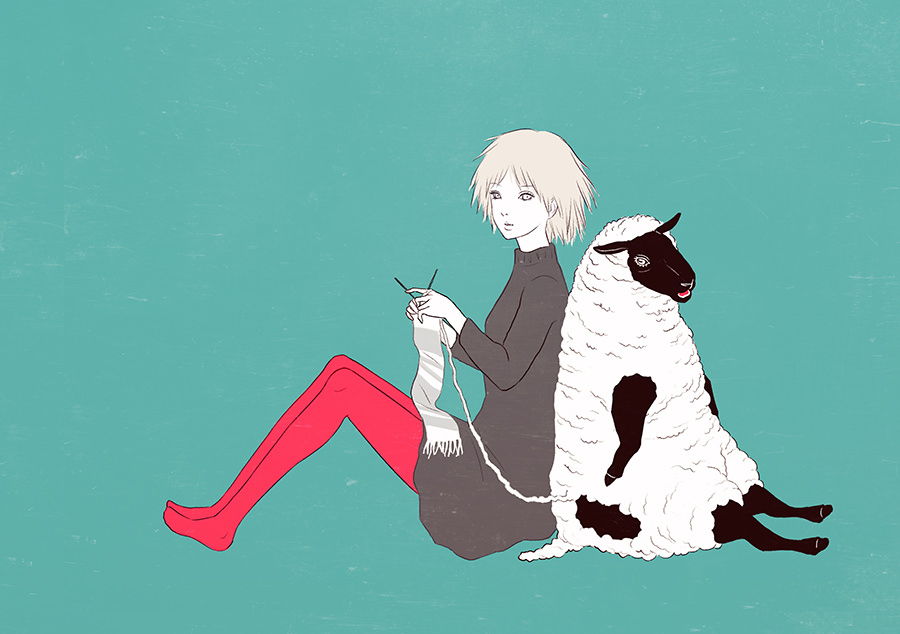 sheep and girl