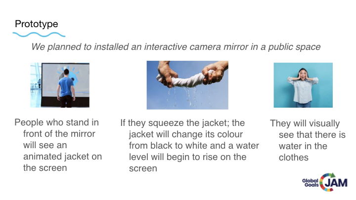 Our insights led us to design a first hand experience that would directly get people's attention to the consumption of water in the textile production process.