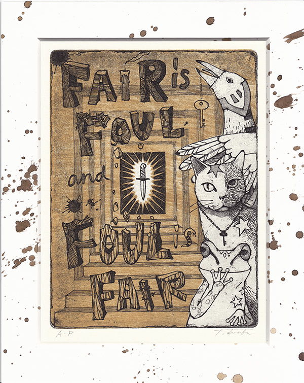 ピンポイントギャラリーの企画展「100人の魔女」展に出品。シェイクスピアのマクベスを題材にしています。