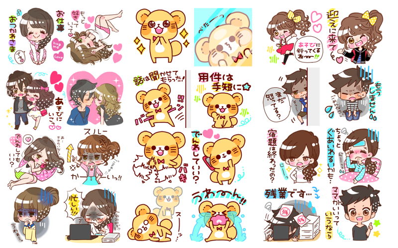 こちらは10~20代の女性向けの恋愛系スタンプになります。