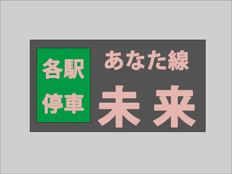 人は誰もが未来行きの列車に乗っています。まだ行った事の無い行き先に向かっているのが楽しみであったり、不安であると思います。そんなイメージを普段乗っている電車に照らし合わせてみました。