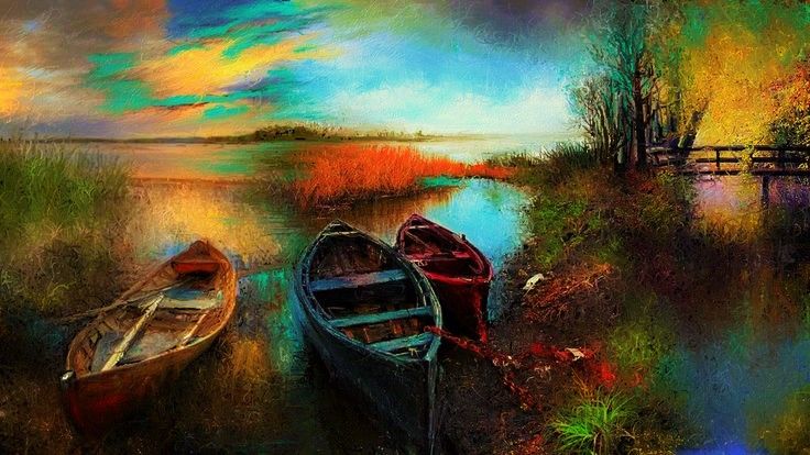 久しぶりに幻想的な湖に浮かぶボートを油絵風に、お絵描きしましたがまた写真の様だと思われる位に細密画してみました。