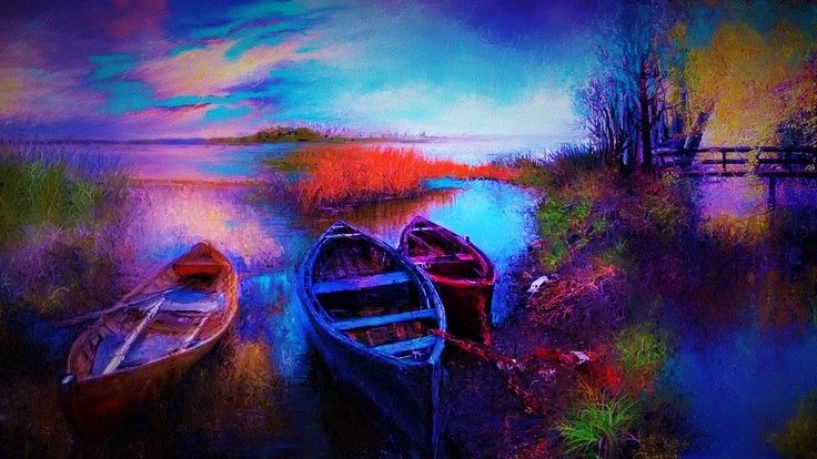 久しぶりに幻想的な湖に浮かぶボートを油絵風に、お絵描きしましたがまた写真の様だと思われる位に細密画してみました。