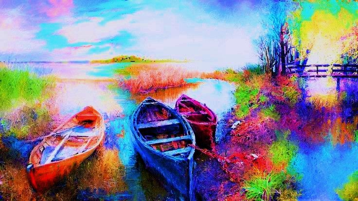 久しぶりに幻想的な湖に浮かぶボートを油絵風に、お絵描きしましたがまた写真の様だと思われる位に細密画してみました。
