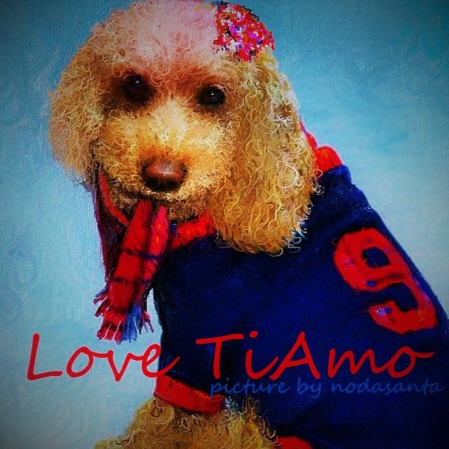 愛犬ティアモトイプードルをお絵描き、毛糸のセーターを着ている少しオシャレなTiAmoです。