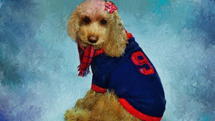 愛犬ティアモトイプードルをお絵描き、毛糸のセーターを着ている少しオシャレなTiAmoです。