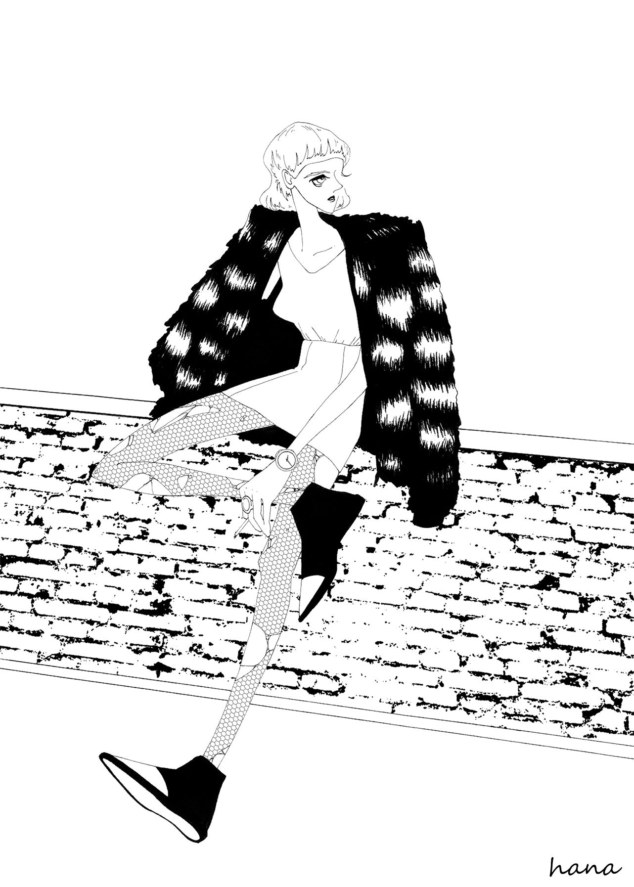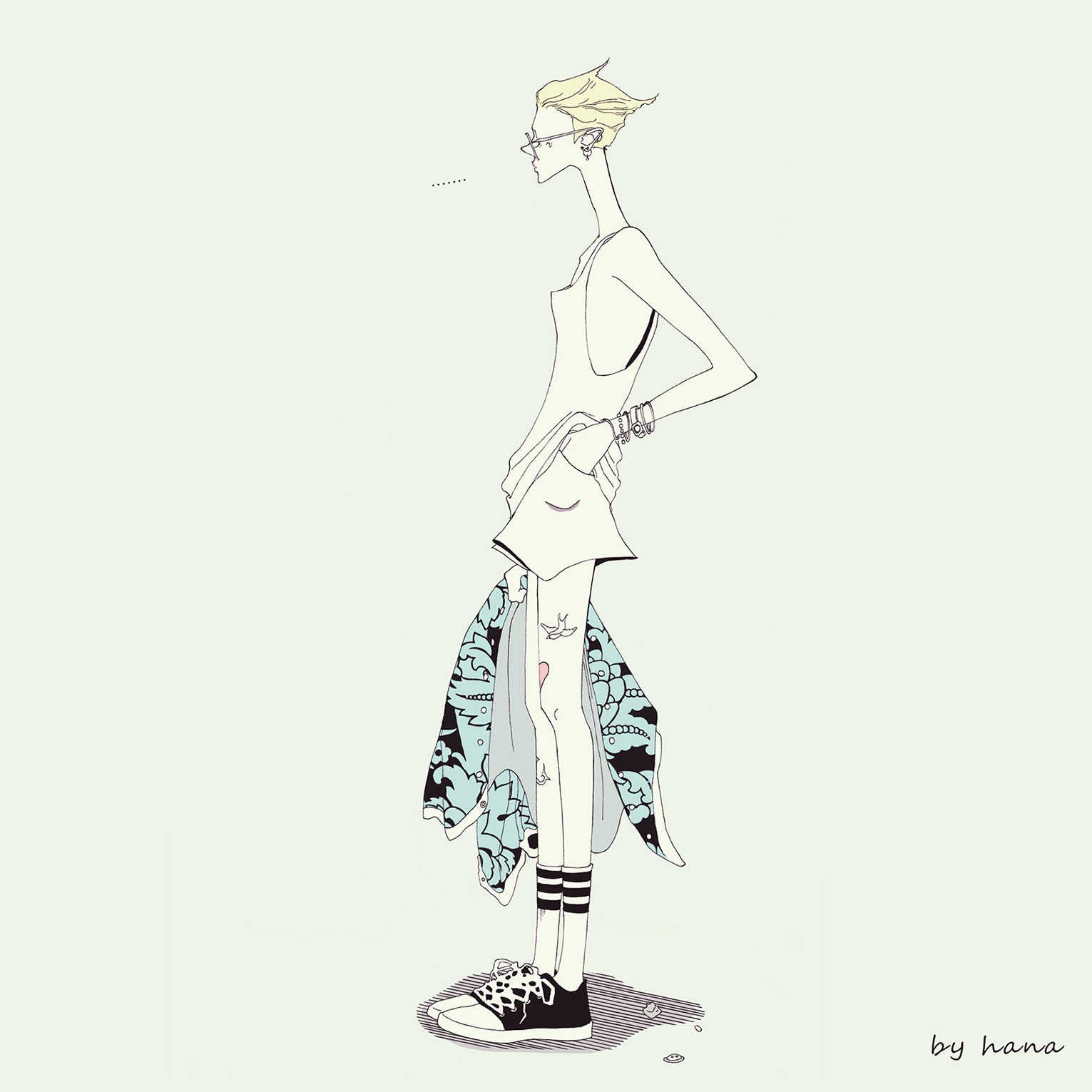 (アナログで描いた絵をフォトショップに取り込んで色を付けています。線に手書きの風合いがあります)