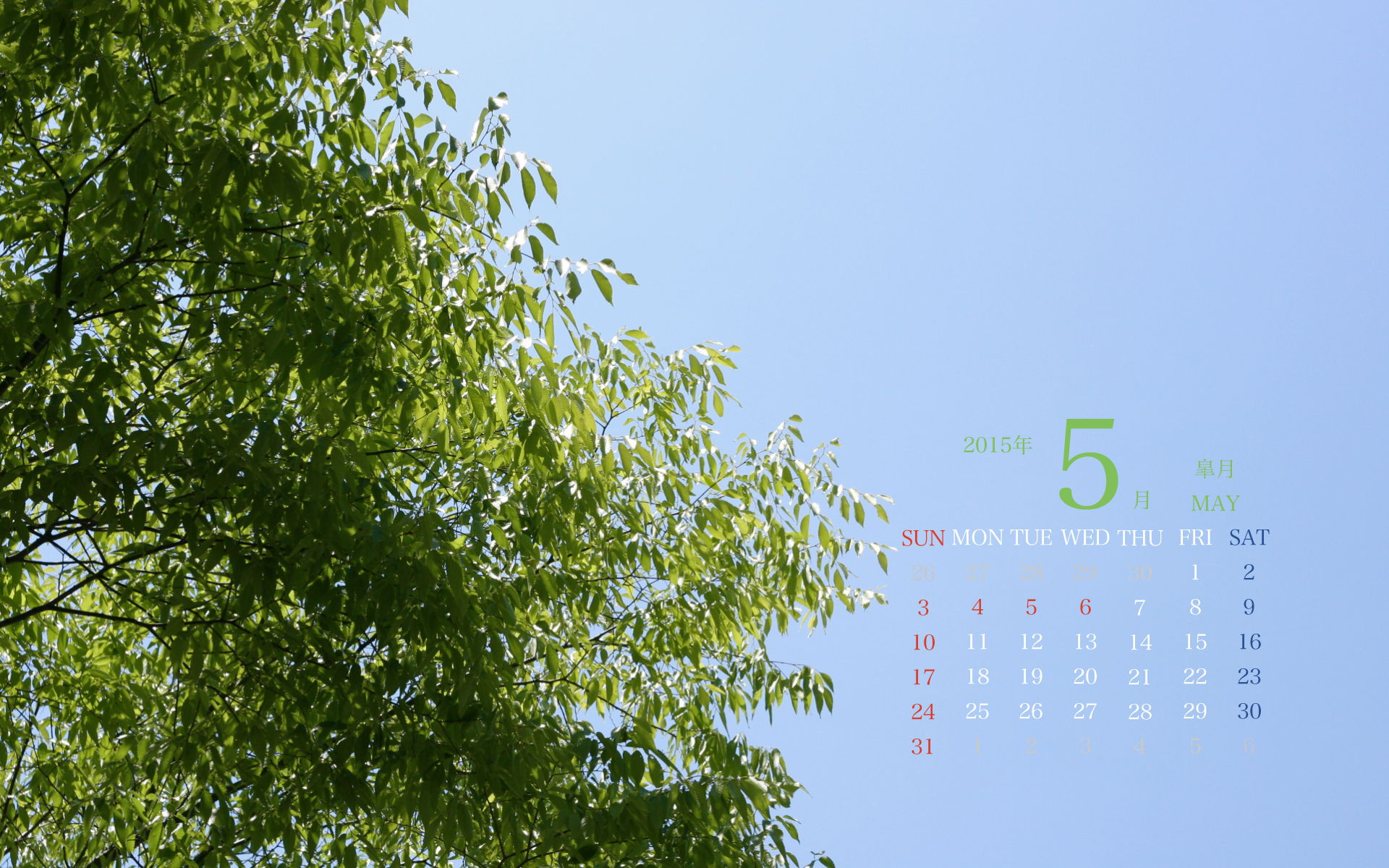 2015年5月PC壁紙(カレンダー付き)3(1920×1200)