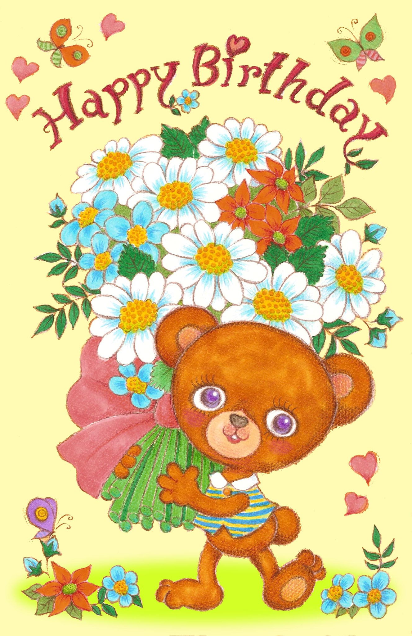 くまちゃんが花束を抱えて誕生日にかけつけました♪