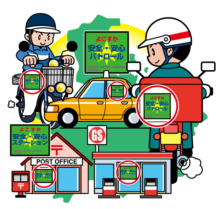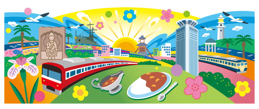 横須賀市の代表的な物を1つにまとめたイラストです。