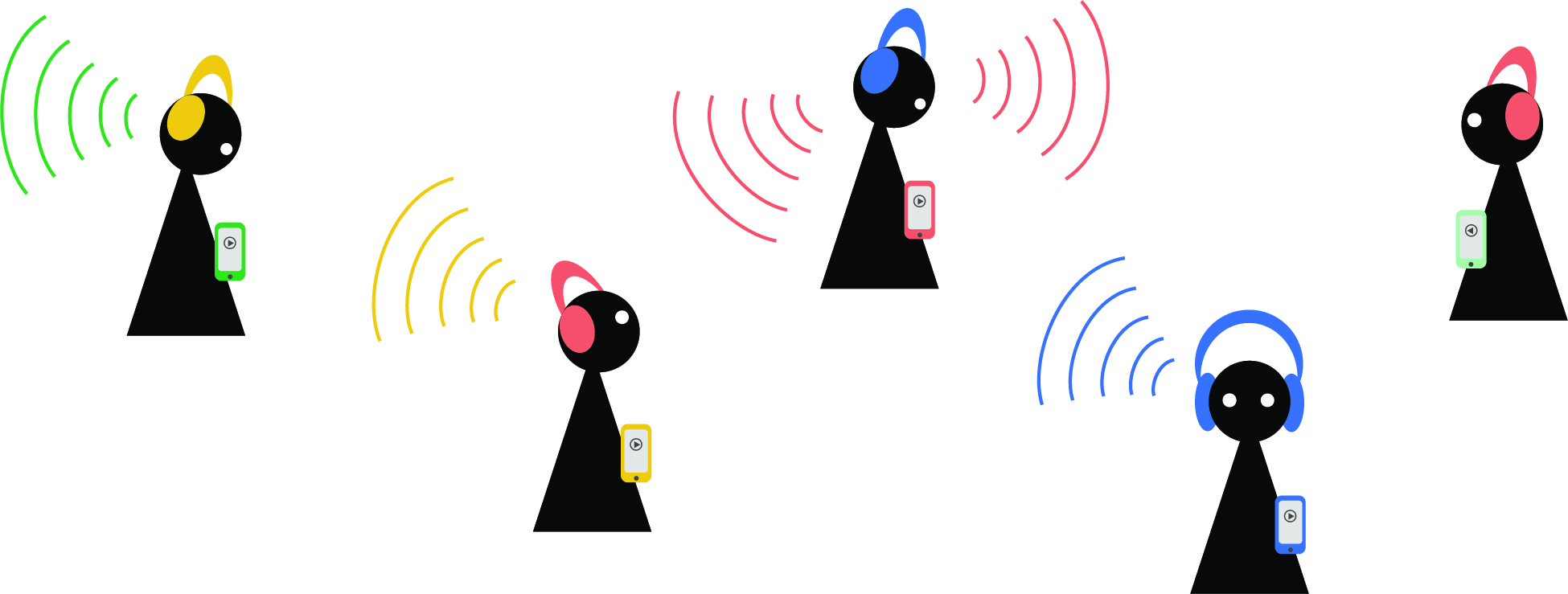 LeakyPhones is a public/private headset that was designed to try and promote conversation, face-to-face interaction and sharing by letting users "peak" into each other just by looking.