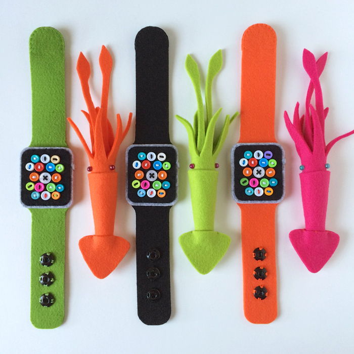 スーパーローテクアップルウォッチ & 3Dフェルトイカブローチ