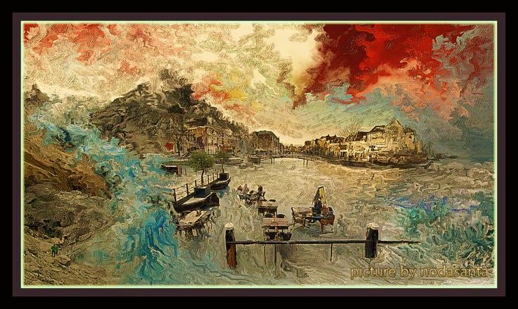 以前にお絵描きした作品で、濁流にの漏れたレストランをお絵描きしました。