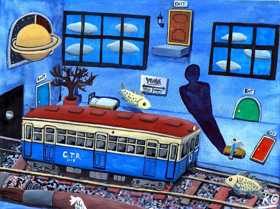 昨年描いた「ステーション・ビルヂング(Station On The Building)」と同じ紙に水彩絵の具で描いたもので、(「ステーション・ビルヂング(Station On The Building)」同様)手持ちの額にあわせたいが為に約18cm×24cm位の大きさにカットしたもの。