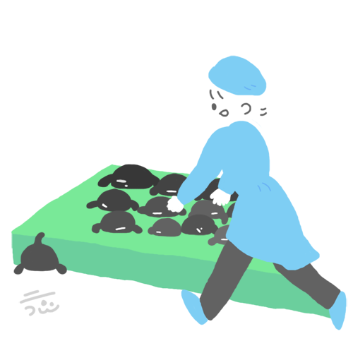 誰かがスリッパの丘を登っていたけど落とし穴に落ちたみたい。。。