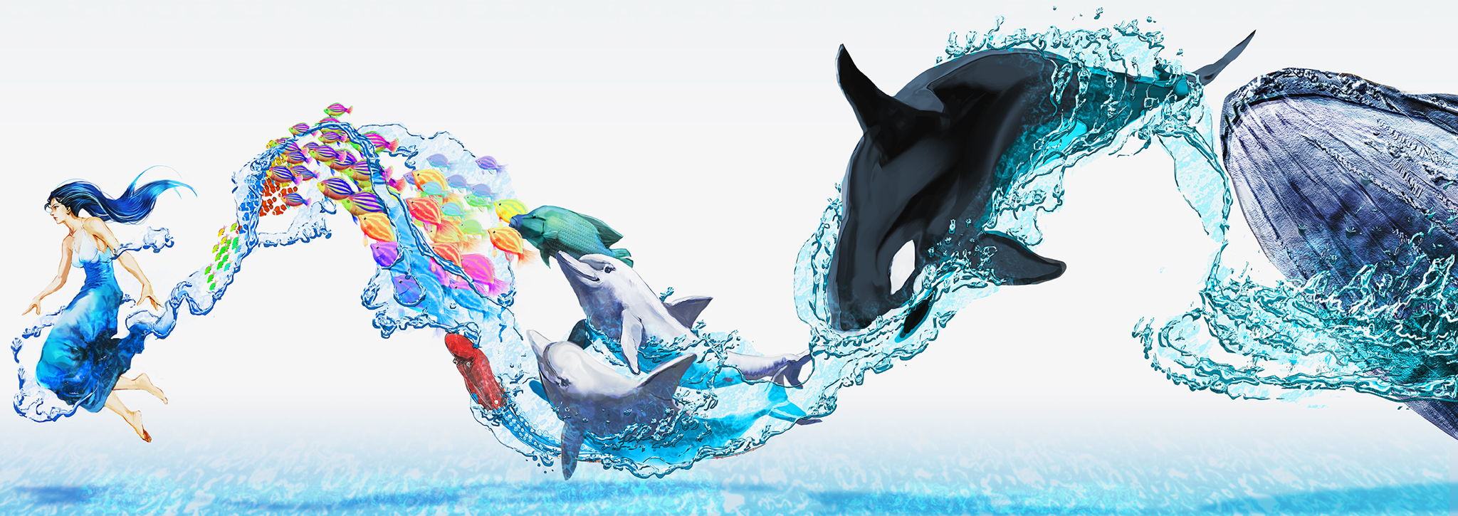 女と海の生き物たち