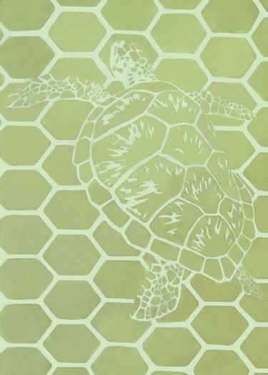 和紙にシルクスクリーン、グリーン部分はフロッキー加工です。