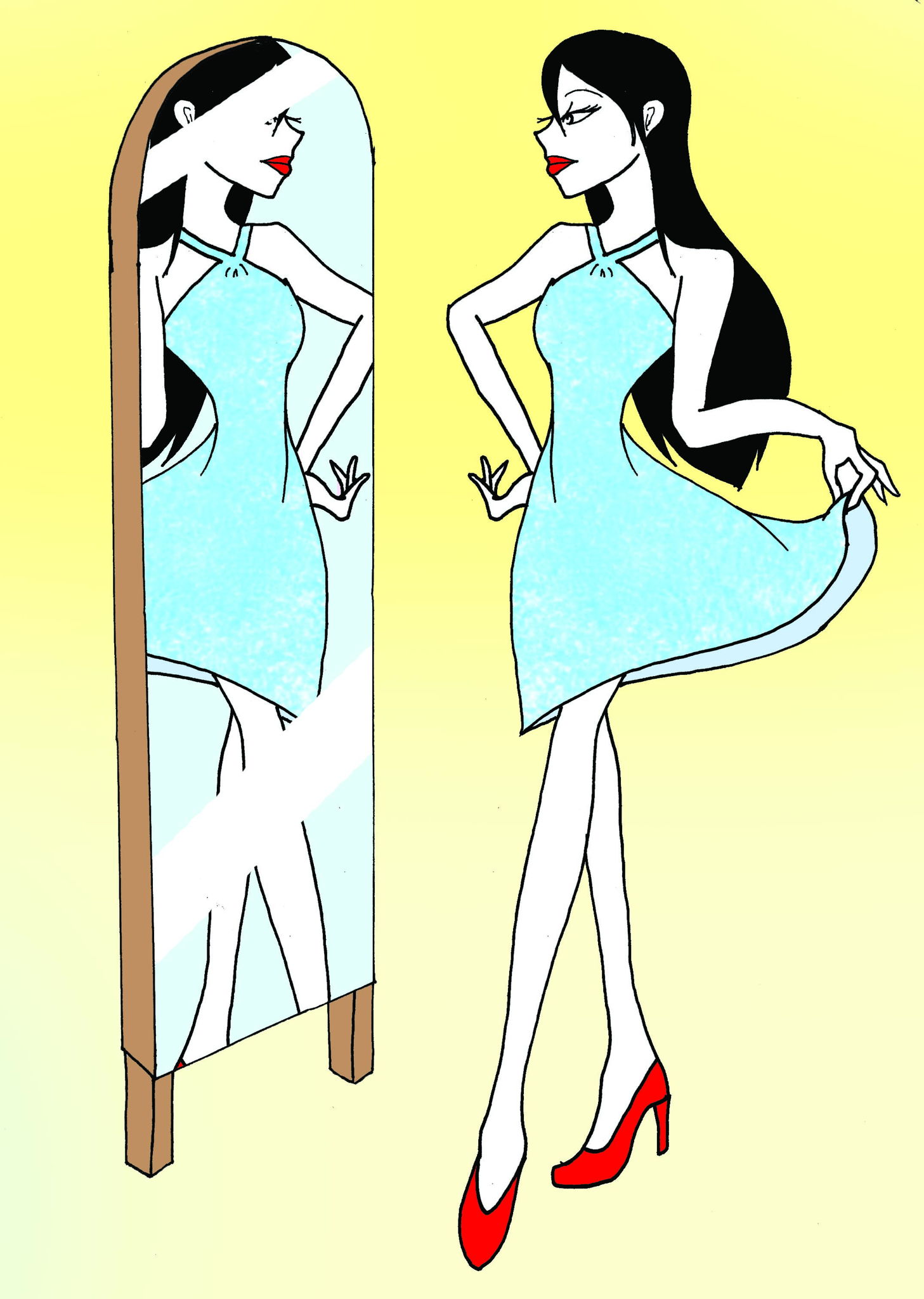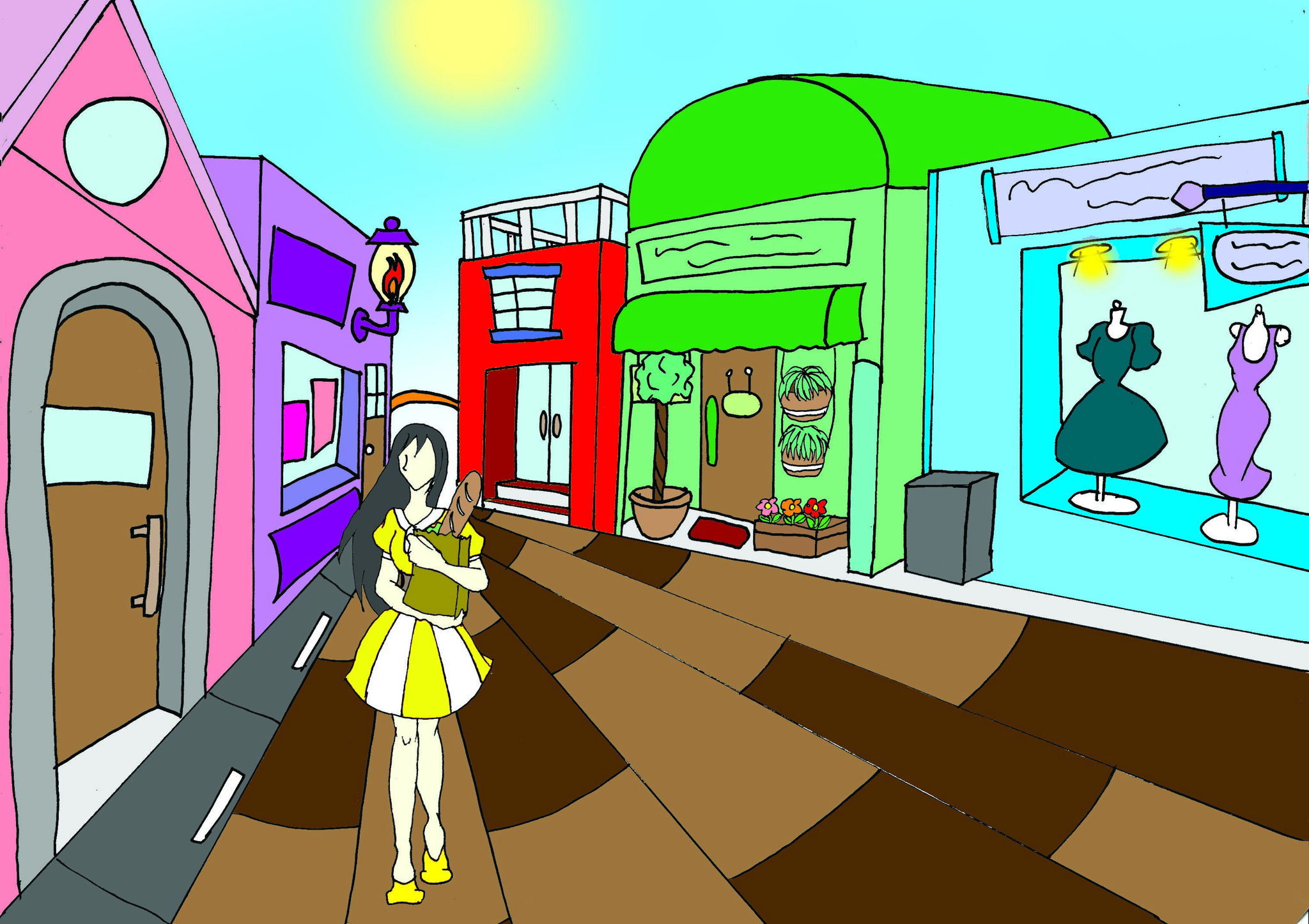 学校で出た「モノを売る、情報を提供するための絵を描く」と言う課題で描いた「ファッション、洋服のセール」をイメージして描いた絵です。