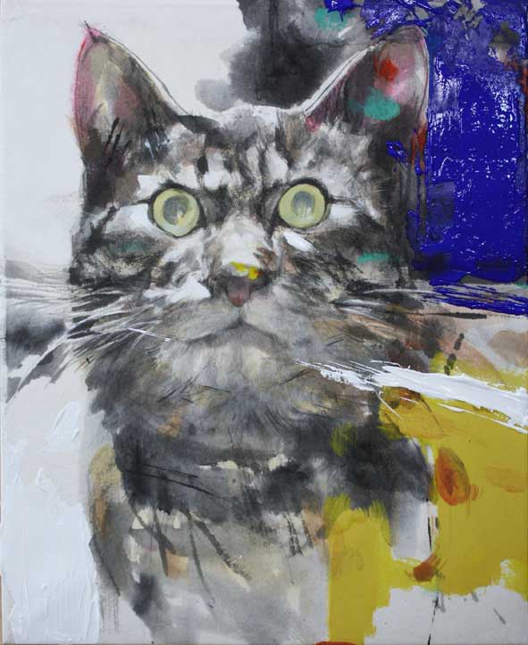 水墨に、アクリルの強くて分厚いマテリアル感が加わるとやっと納得が行くといった事もしばしば経験している。