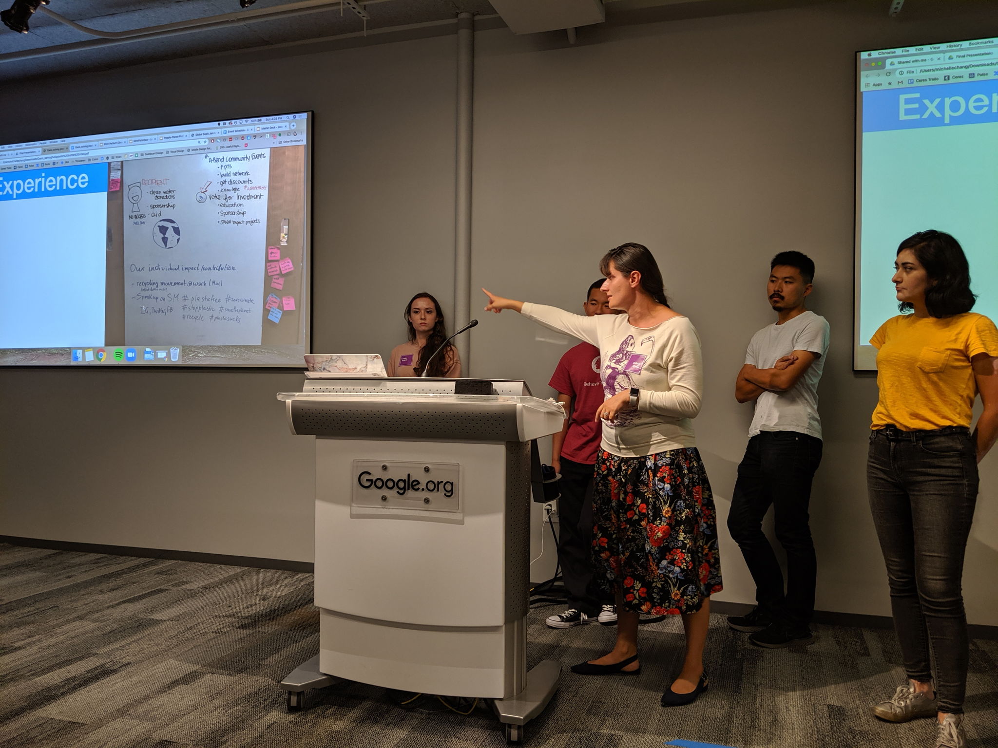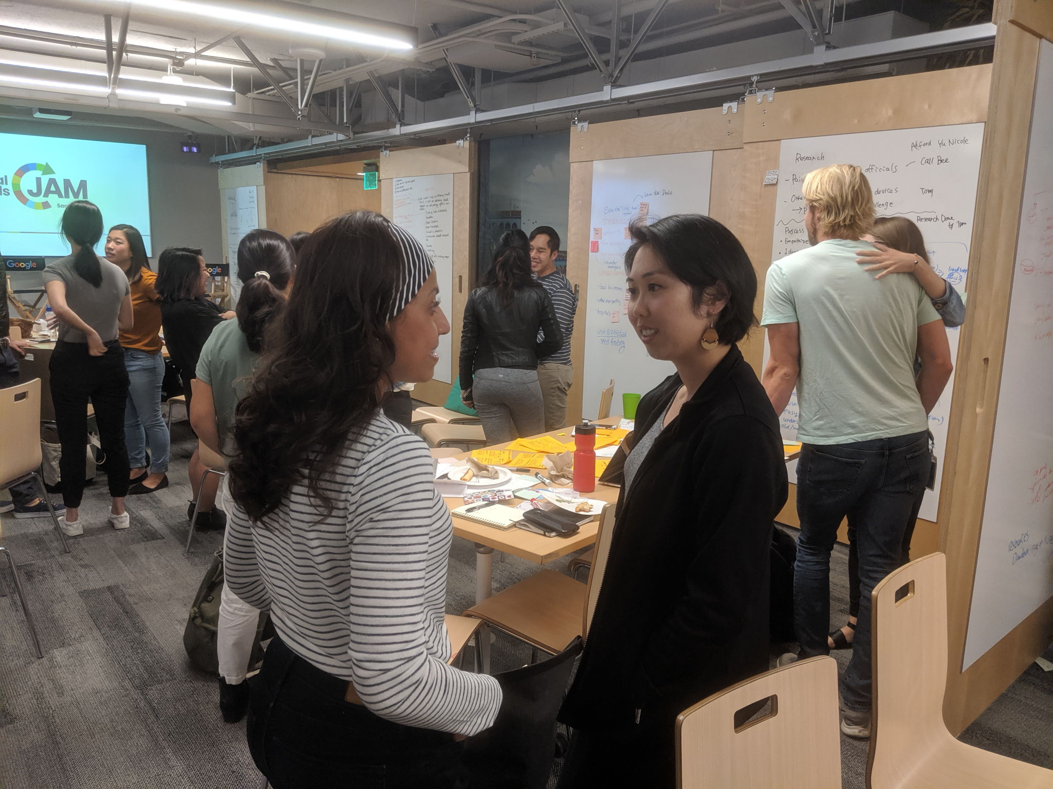Our 2-day Global Goals Jam was hosted at the Google.org Community Space in San Francisco. We had over 80 participants register and over 50 attendees over the two days. Our focus was on SDG #6 Clean Water & Sanitation and SDG #13 Climate Action. To launch the event we invited local leaders to share “lightening challenges” that our attendees then formed teams around solving for. The challenge problems included nitrogen pollution, reducing plastic water bottle usage, how to pitch climate adaptation initiatives to funders, and the water-energy nexus.