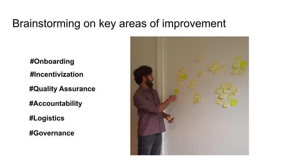 To critically analyse the functions of the platform and to discover an area for contribution we conducted a design method called “How might we”. The goal was to identify key dimensions and topics for implementing, growing and improving Digital Karma. In this sprint we decide to work on the problem statement through a dot voting round: