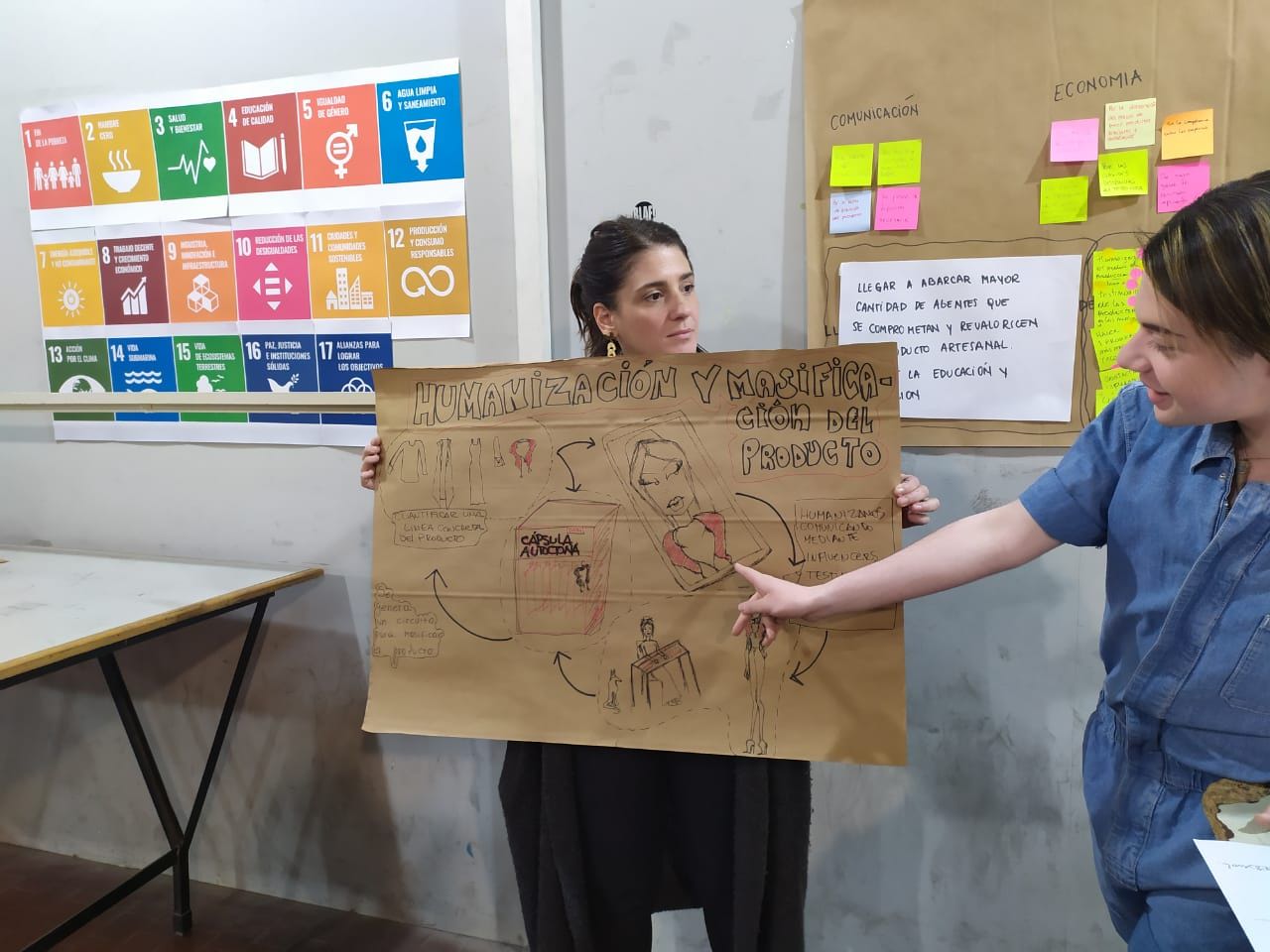 We incorporate new dynamics in the JAM. We worked with two organizations with different problems that respond to the SDGs: “Brotes” is an organization that recycles plastics (collected by the Garraham hospital) and reuses them in different objects, also promotes projects linked to the generation of industrial compost in different neighborhoods. Also participated the organization "Hecho por nosotros" an organization that reclaim the local technologies of different regional economies, and in this case they worked with the wool of sheep.