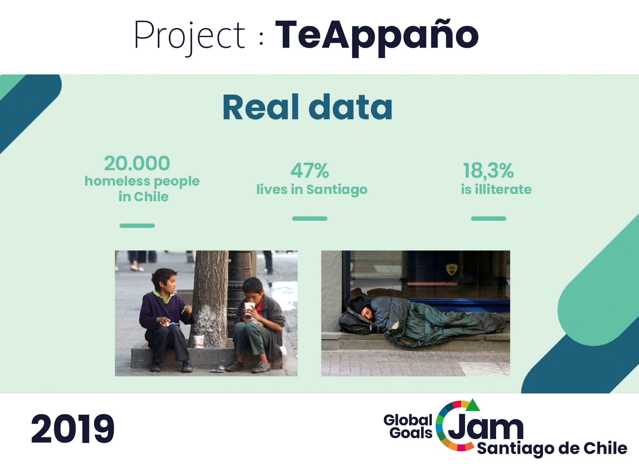 20,000 people living as homeless in Chile. 47% lives in Santiago streets. 18% are illiterate.