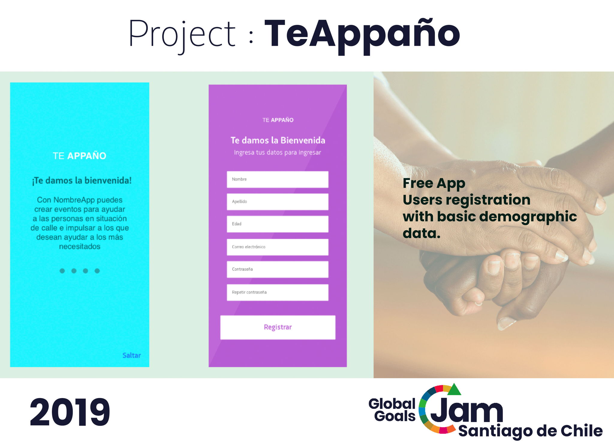 Te Appaño is a solidarity-community app, to make visible and organize community-supported events to help homeless people in Santiago.
