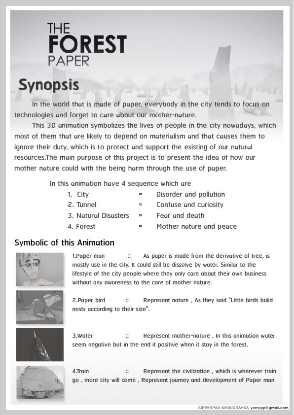 This 3D animation symbolizes the lives of people in the city nowadays, which most of them that are likely to depend on materialism and that causes them to ignore their duty, which is to protect and support the existing of our natural resources.The main purpose of this project is to present the idea of how our mother nature could with the being harm through the use of paper.