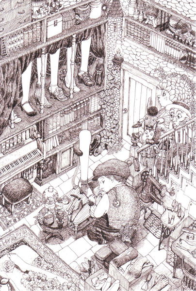 妖精の靴の修理もそっちのけで、少女の脚のための靴作りに夢中なのです。