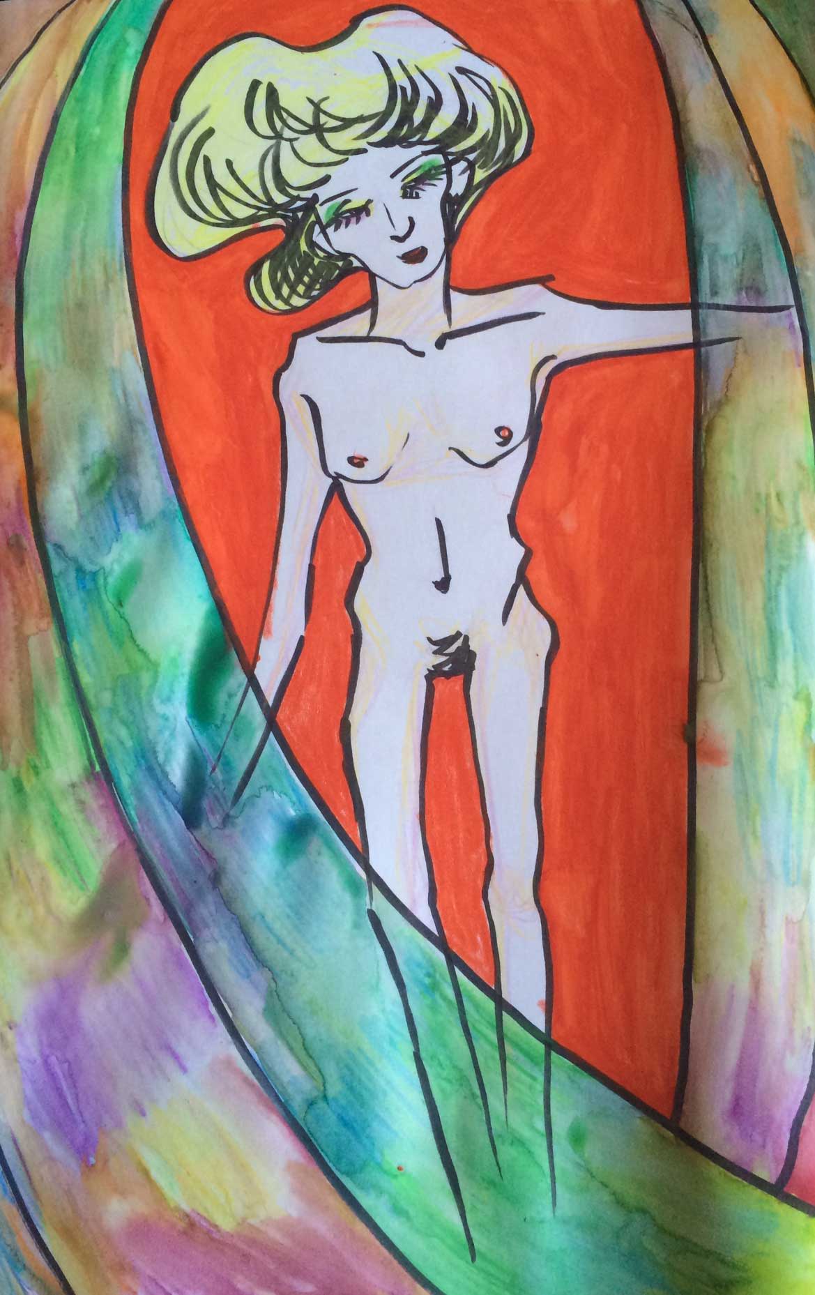 手描きの女性の水彩画です。