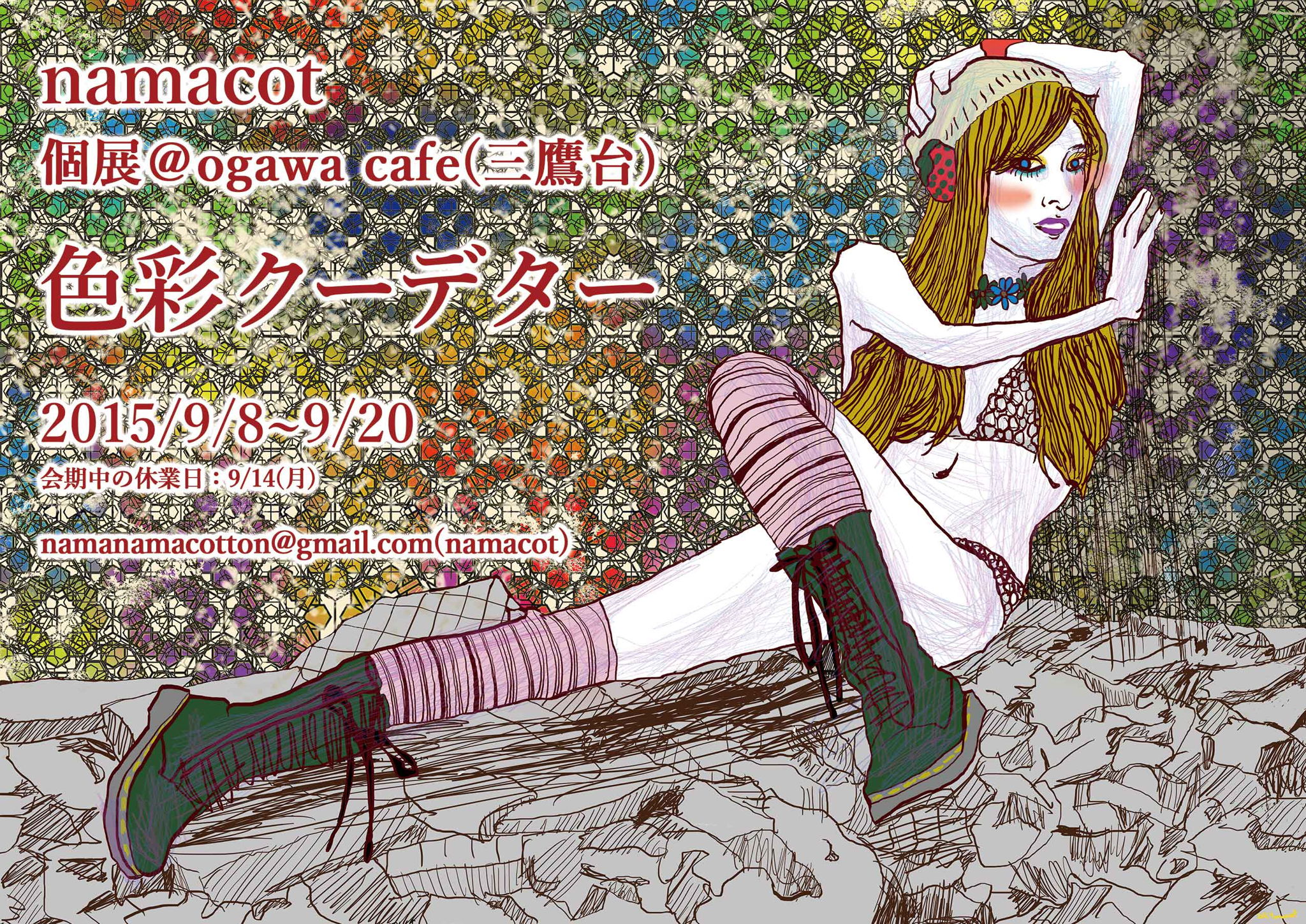 2018/9/8~20、東京都三鷹市にて開催の、個展「色彩クーデター」の告知です。