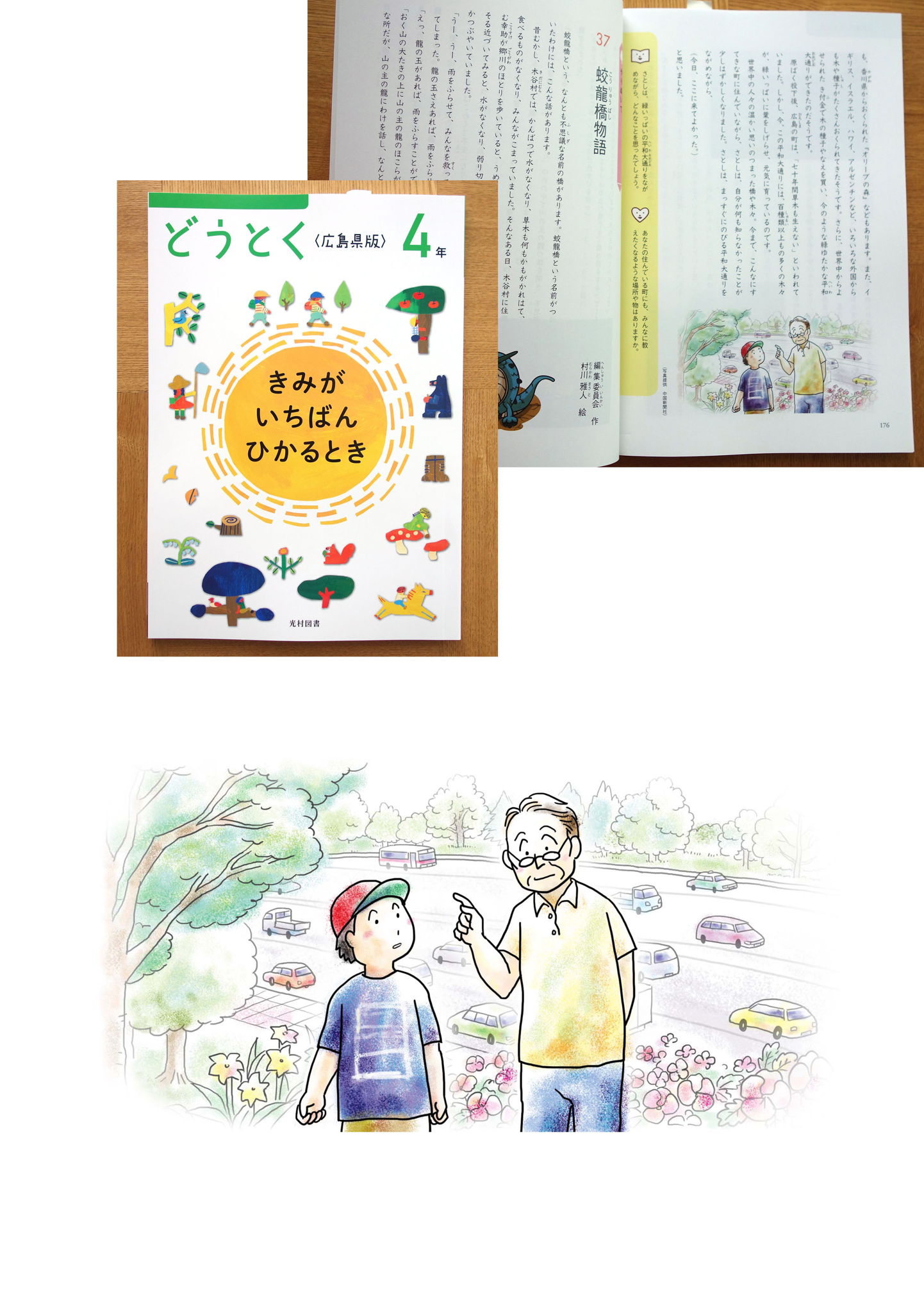 光村図書さんの道徳副読本(茨城県版、広島県版)1~4年生用に、小さなカットをちょっとずつ描かせていただきました。
