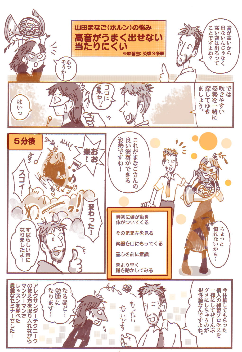 2014年夏、学研のFacebookページ「私立GP学園吹奏楽部」 にて掲載された、音楽セミナーの取材レポート漫画です。掲載先→ https://www.facebook.com/gpbrass/photos/a.226681060856992.1073741827.226637514194680/276560819202349/?type=1&permPage=1