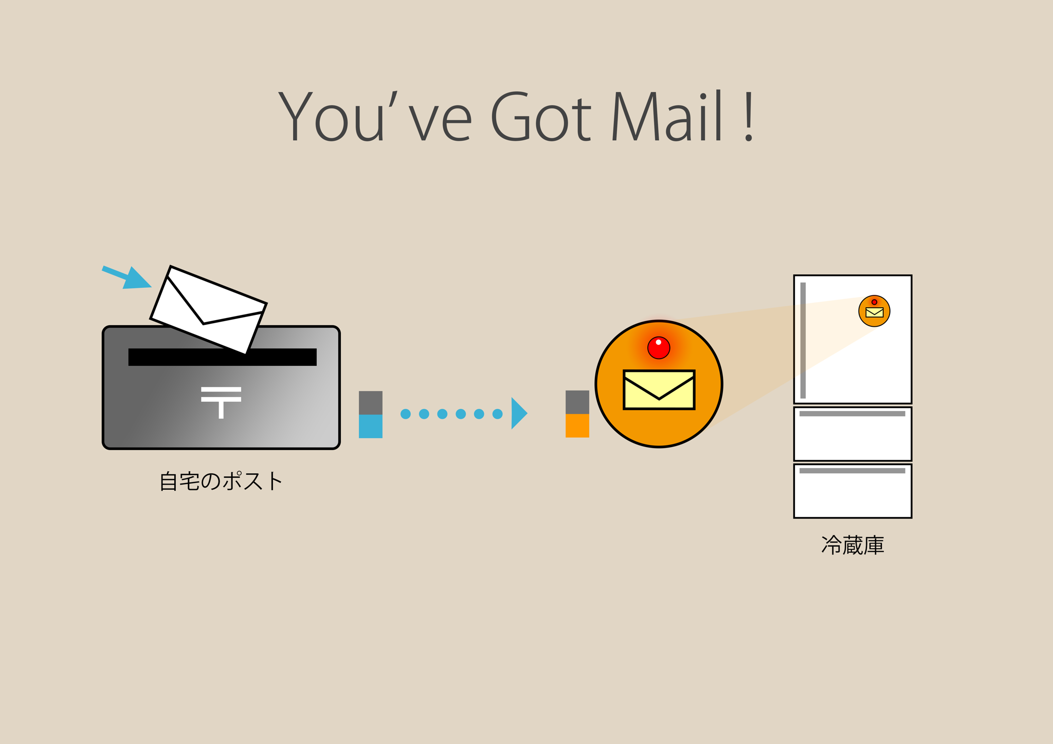 Moveタグをポストの内側に仕掛けておいて、何か投函されると、家の中のLEDタグが光る仕組みです。LEDタグはマグネットで冷蔵庫や玄関ドアなど目立つ場所に取り付けられます。