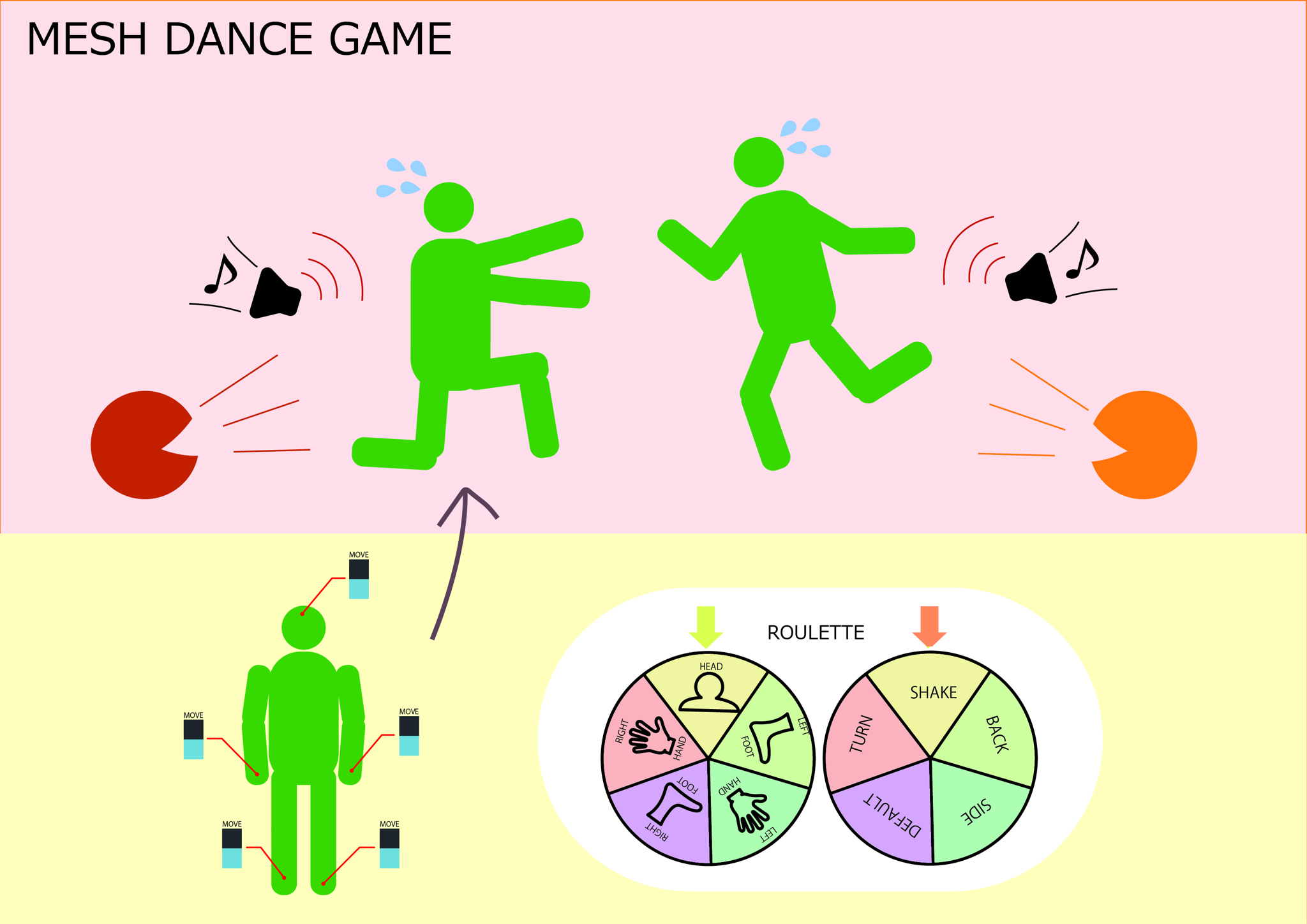 MESHタグを使った新しいゲーム!体の部位にMOVEタグを付ければ体のポーズを検知することも出来ます。ランダムで選ばれたポーズをとっていきそれに合わせて音がなる。最後までポーズについていけたら勝ち。やって楽しい見て楽しいゲームです!