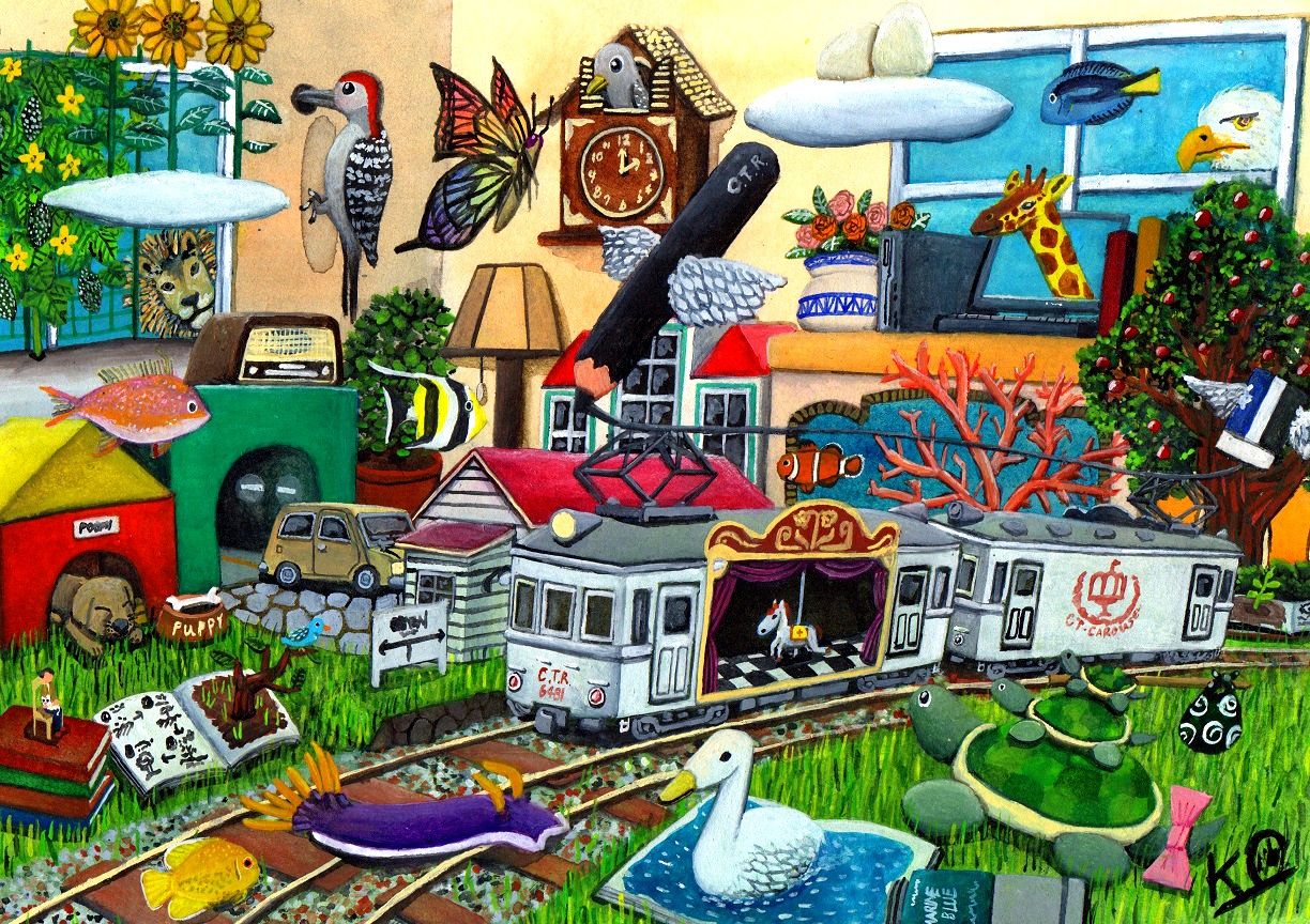 描く上では「室内」ではいつも描いているような「ファンタジック」な生物達を、