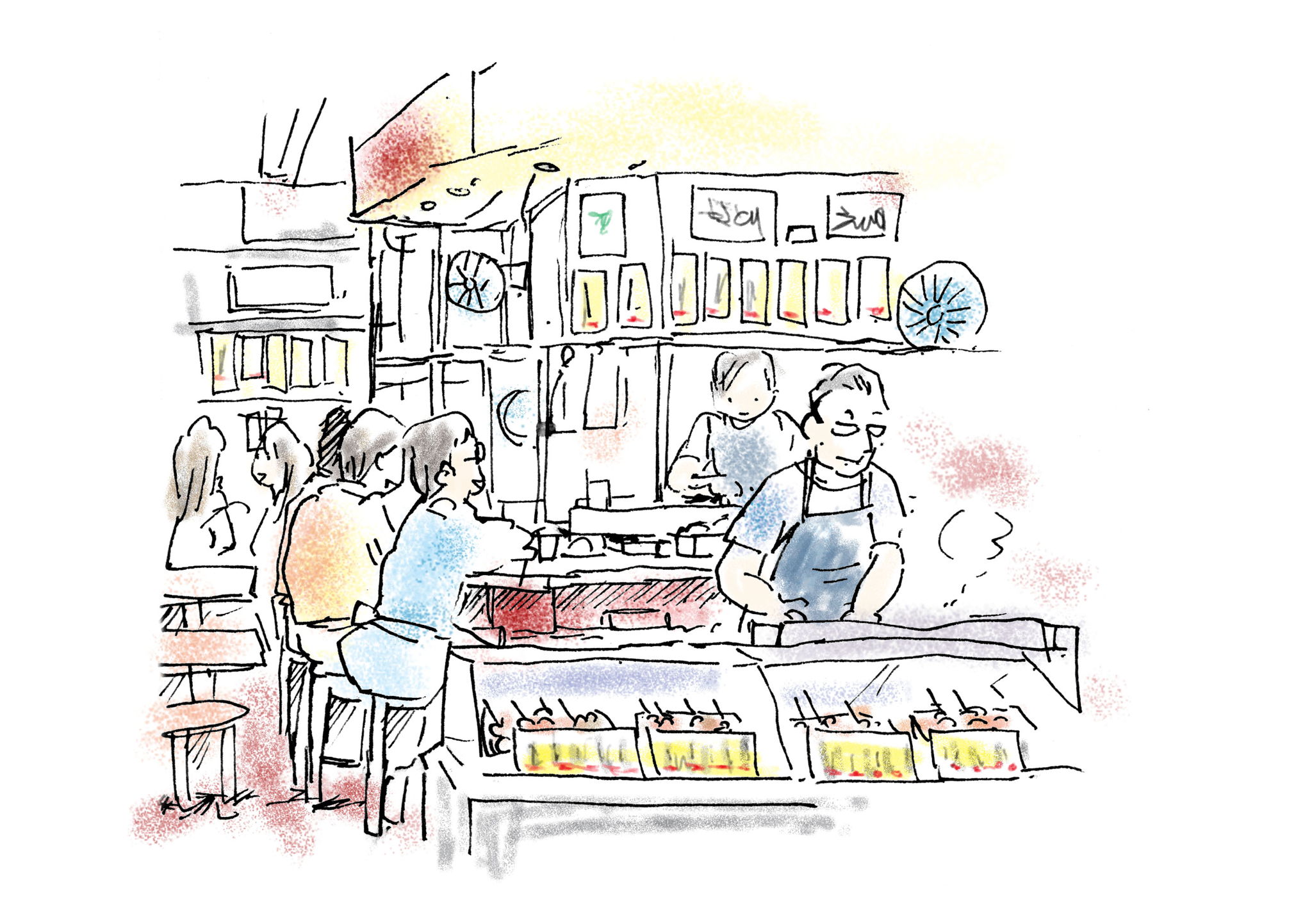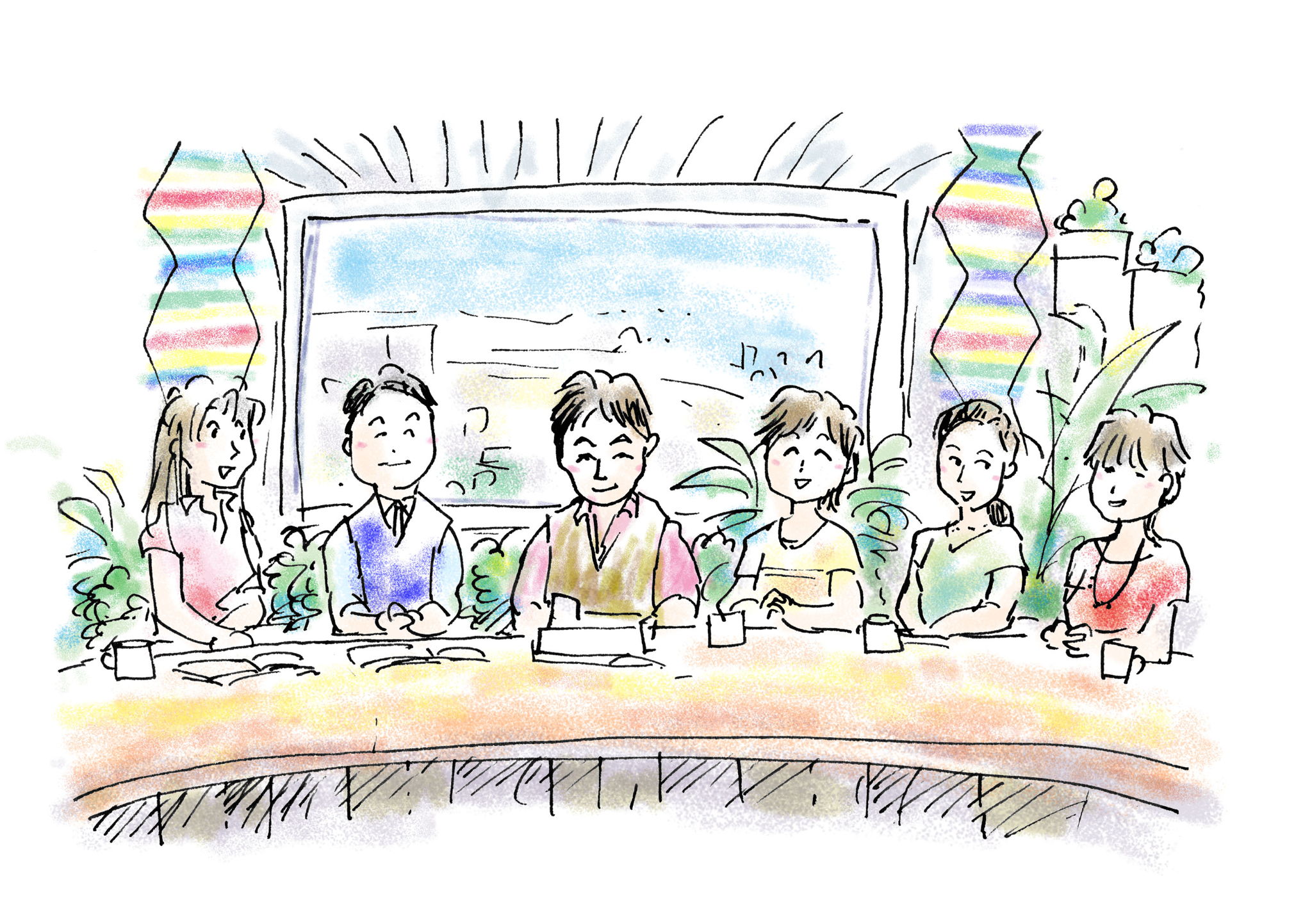 ロケに参加し、出演。線画まではほぼ現場で行い、仕上げや彩色は持ち帰って実施。