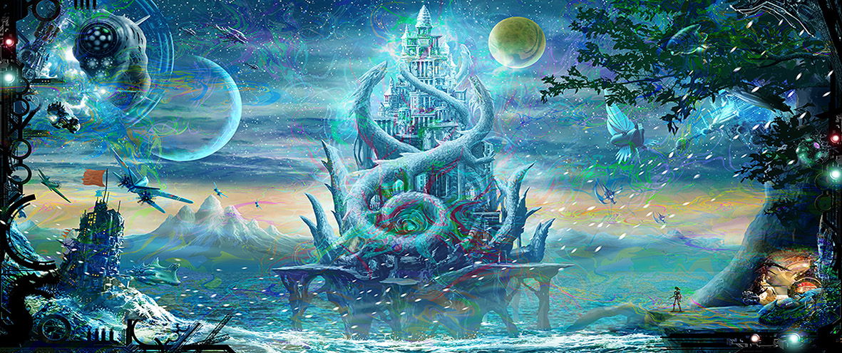 I took portions of each of the several illustrations I’ve done recently and put them into one illustration. When I draw illustrations, I do so while creating stories for each one, and I arrived at different stories for the portions of each illustration. I then expressed their connection through a single illustration.