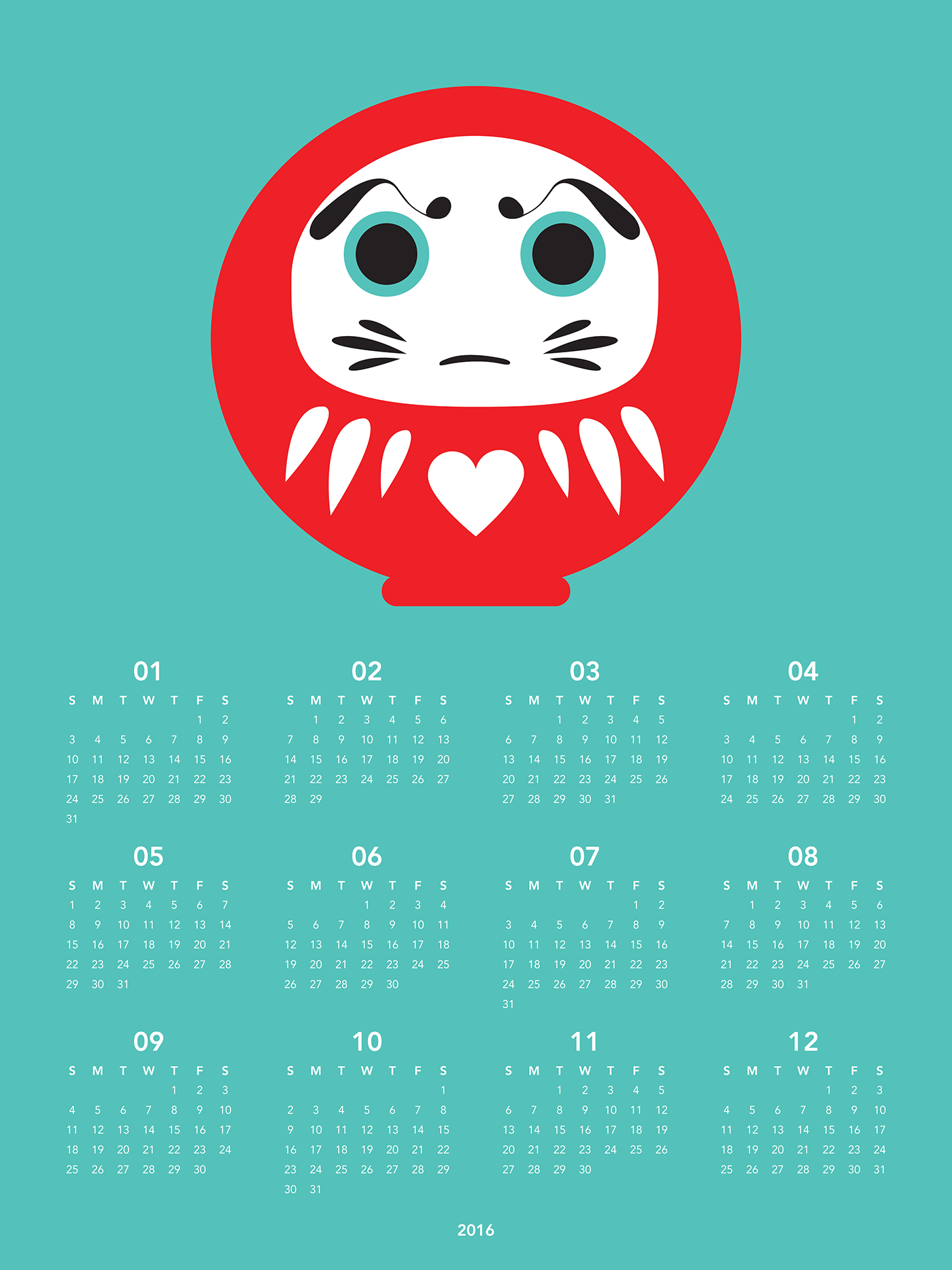 2016 Calendar Daruma | 2016年カレンダーだるま