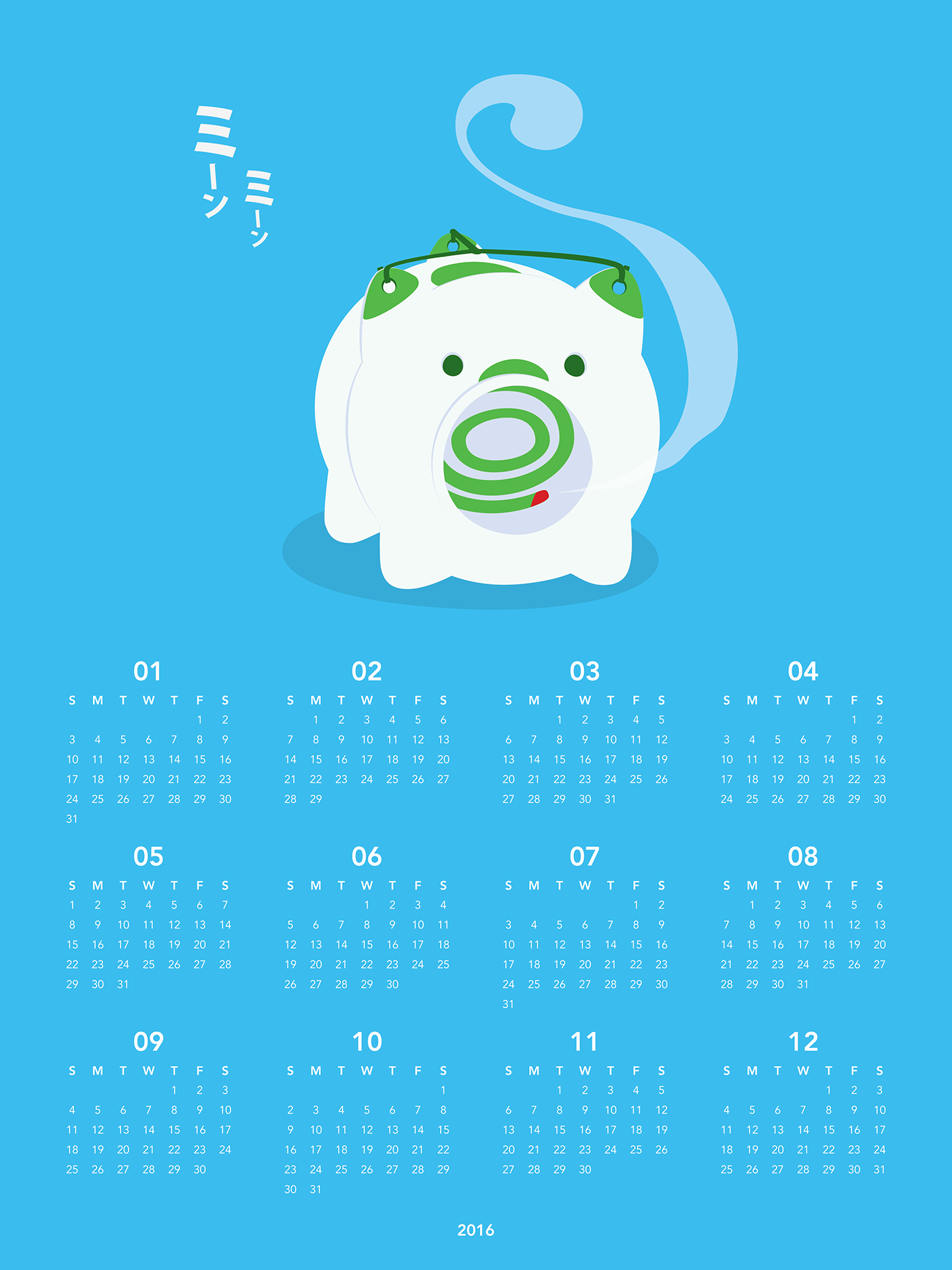 2016 Calendar Katori Buta | 2016年カレンダー蚊取り豚