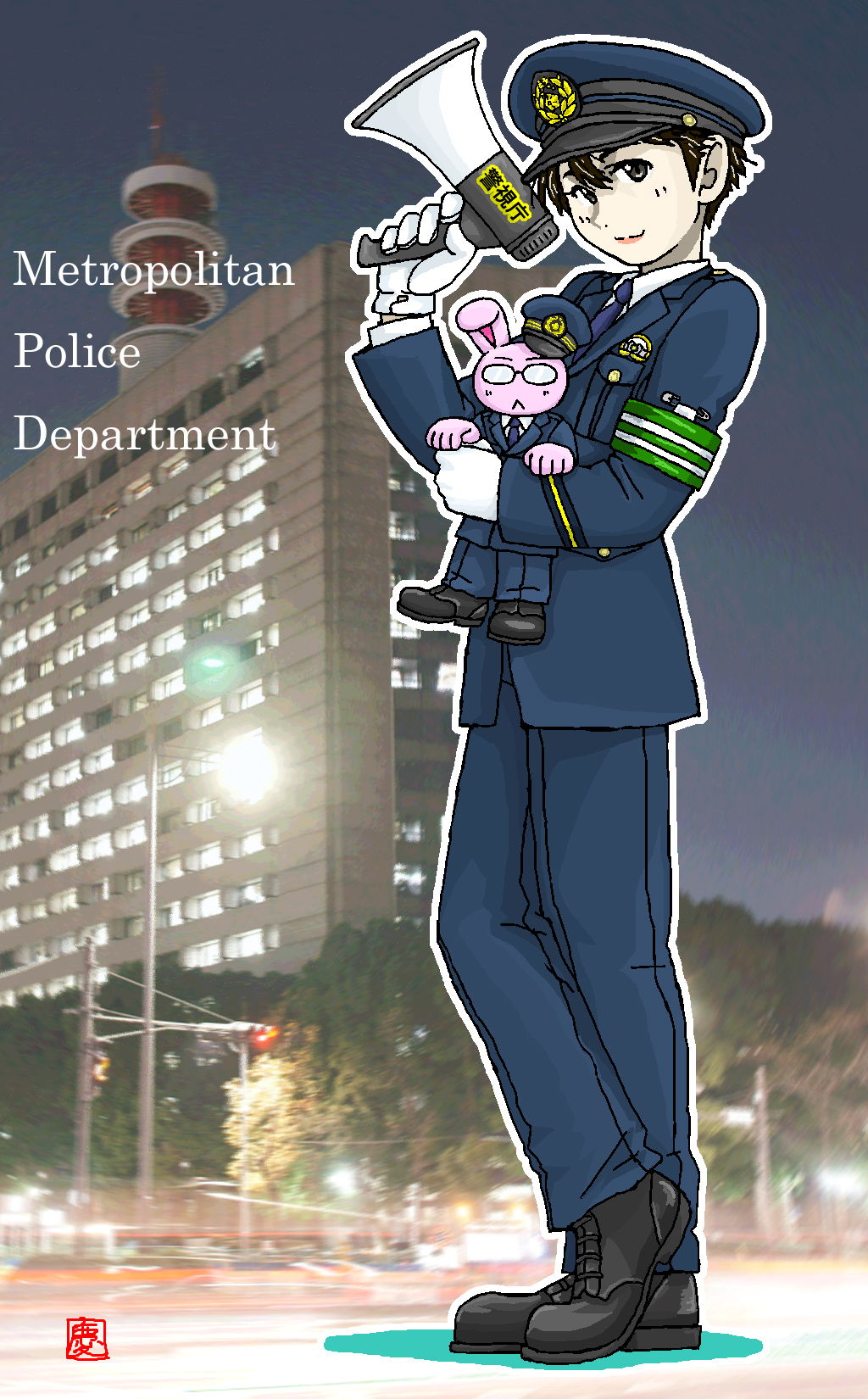 制服神戸君に『神戸尊の事件簿』@mixiページのマスコットキャラ、うさこうちはるきさんをだっこさせました。