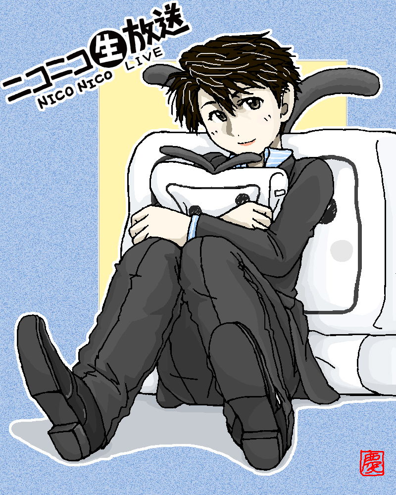 ニコ生なのでニコニコテレビちゃんを抱っこ。