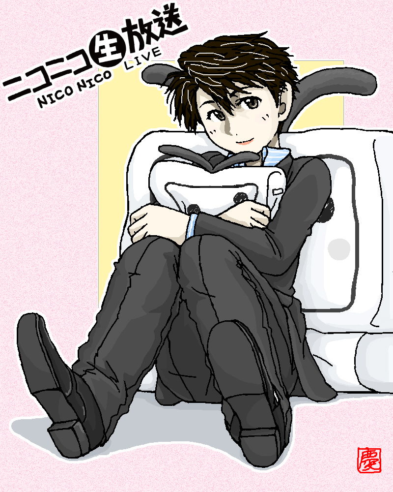 ニコ生なのでニコニコテレビちゃんを抱っこ。