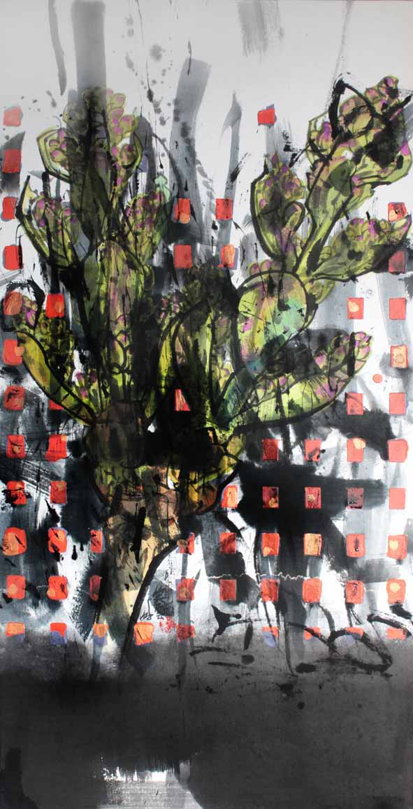 アクリルの朱色など、元の絵ではいやらしさがあったが、墨に埋没するにつれそれは良い姿になって行く。