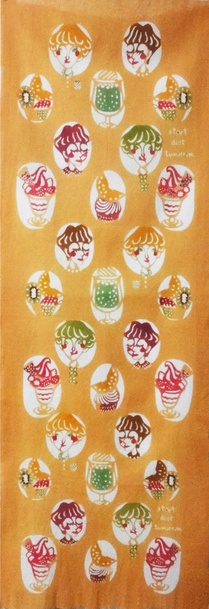 大好きなスイーツを前に、「ダイエットは明日から…」と嬉しそうに頬張る様子を描きました。